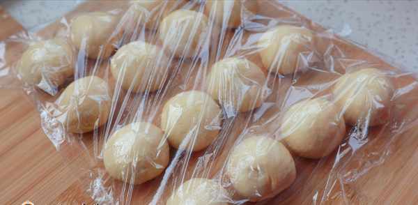 (6)将丸子放入大碗中,盖上保鲜膜发酵至两倍大。相反,它的体积明显更大,内部呈蜂窝状。