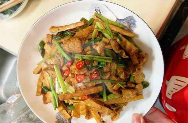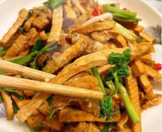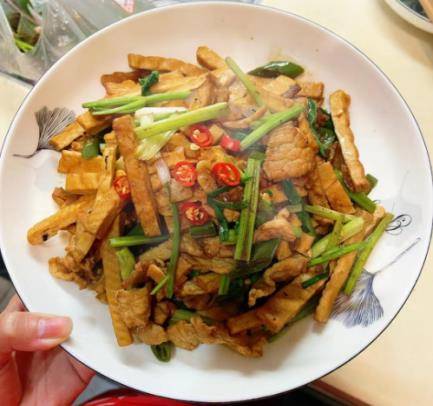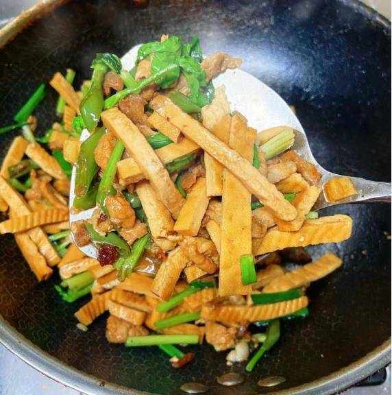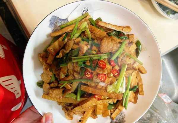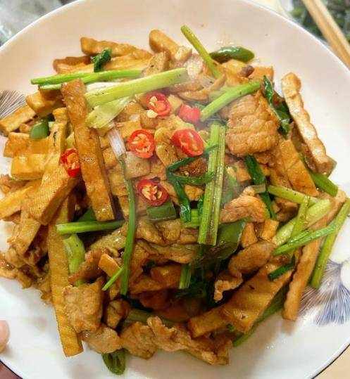芹菜豆腐干炒肉是一道美味可口的菜肴。豆腐干很嫩滑,肉片也很滑。芹菜入锅可以刺激我们的味蕾,满足食欲,提供身体所需的营养。早点吃以利用。