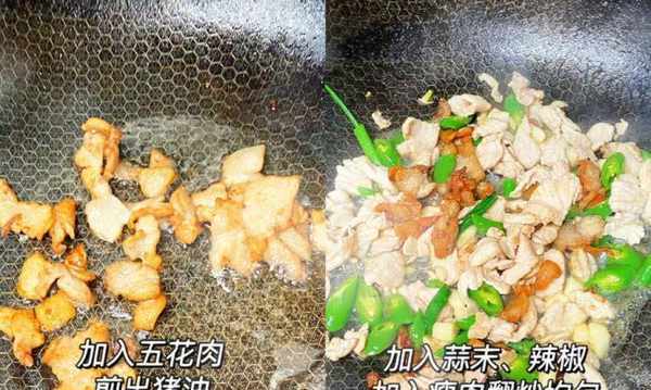 第五:锅中放少许橄榄油,倒入少许肥肉翻炒至猪油全部熟透,加少许姜蒜,倒入瘦肉翻炒至变色,加少许辣椒粉炒熟直至粉碎。