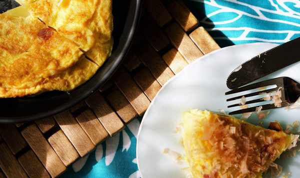 3.一面煎至金黄色后,翻面煎另一面。将两面煎至金黄色后,苹果煎蛋就煮熟了,可以上桌了。