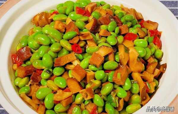 4、新鲜的毛豆在豆干香菇等食材的承托下变得更加鲜美,鲜辣清脆、每一口下去都是回味~拿来下饭简直了,就怕你家米不够啊。