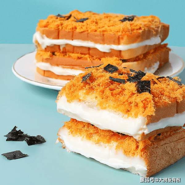海苔肉松面包质地比较松软,用心挑选原料,精制小麦面粉经过发酵,面包更加绵软回弹。黄金肉松加上香脆海苔,在两片吐司面包之间抹上沙拉酱,味道更咸香可口。