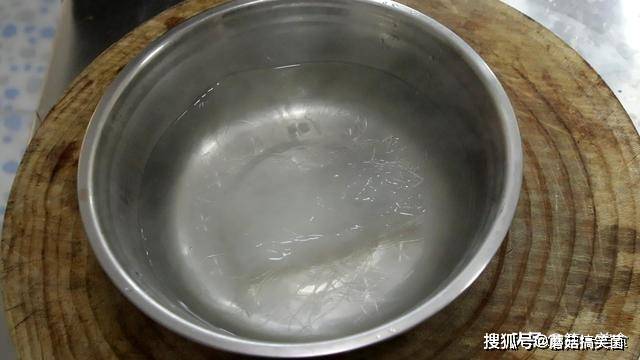 粉丝一把放入盆中,加入开水浸泡20分备用。