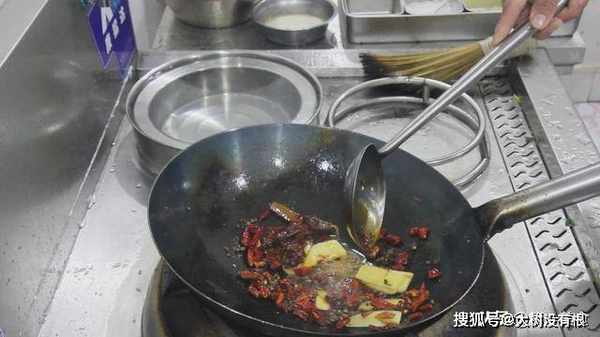 锅内加入少许植物油。倒入佐料煸炒。闻到佐料的香味以后。倒入豆瓣酱辣椒酱。炒出豆瓣酱和辣椒的香味。