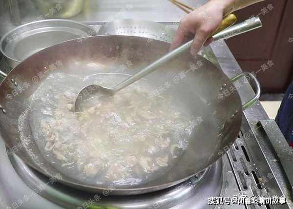 顶刀把羊肉切成薄片,有筋膜的地方打掉 ,以免垫牙。