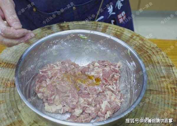 把葱姜水分次淋入 ,并持续的搅拌摔打。让肉片充分吸收葱姜水。