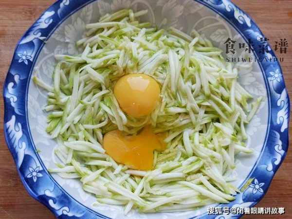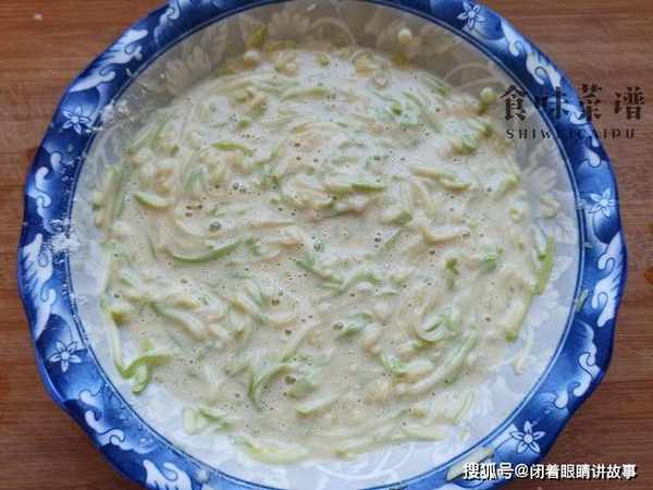 2、整个过程不用添加一滴水,有蛋液和西葫芦丝的内部水分,就已经足够了。