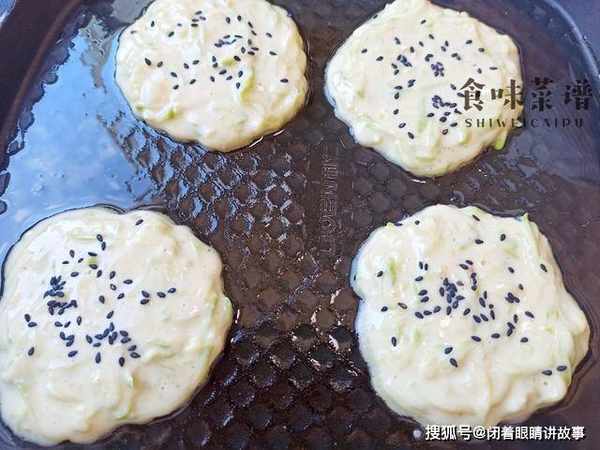 食材:西葫芦、鸡蛋、面粉、葱花、黑芝麻