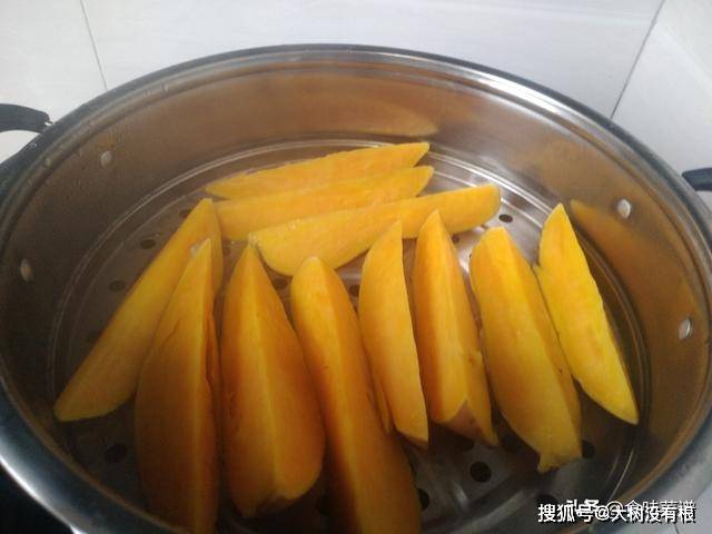 1、把红薯切开上锅蒸20分钟左右,红薯变软即可。