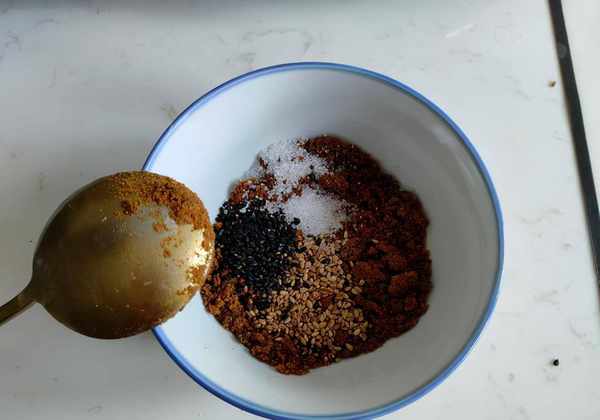 接下来做馅料。结块的红糖打碎,加入少许白糖和少许芝麻。芝麻需要煮熟,可以自己炒,更香。直接买的熟芝麻没有自己种的香。