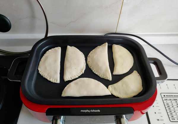 如果你会揉花边,你就能揉出漂亮的花边。我们这边比较简单,贴吧。如果想好看一点,可以用叉子压一下;还是用我祖传的绝招——用碗倒扣,边缘很工整。
