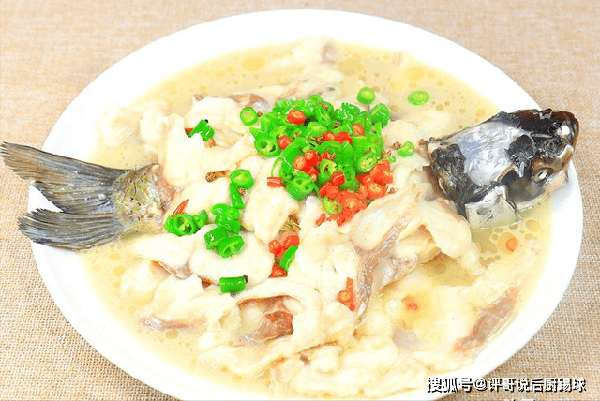 再次把鱼汤煮至微微沸腾,依次放入鱼片大火煮30秒钟,鱼片变白以后捞出来装盘,均匀浇上鱼汤并撒上青红椒圈和麻椒,再泼上热油,美味即成。