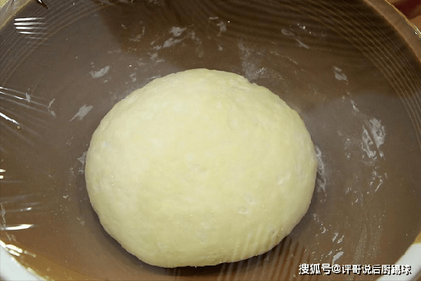 把面絮揉在一起,揉成一个光滑的面团,用保鲜膜盖住,密封发酵至原来的2倍大,现在温度比较高,大概1个小时就可以了。