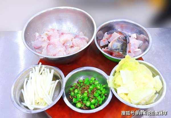 锅内再烧油 ,大火翻炒至白菜帮断生,再放入白菜叶翻炒均匀,加入少许食盐,白菜叶微微塌软后往锅中多淋几次鱼汤,炒好以后盛放在盘中垫底,然后把鱼汤重新倒入锅中,加入食盐2克,胡椒粉2克,白糖少许提鲜,煮至鱼汤沸腾时放入鱼头和鱼尾,煮熟后捞出来摆盘。