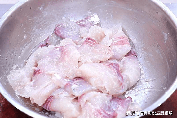 准备宰杀过的草鱼一条,把鱼肉片下来再去除鱼皮,再把鱼骨斩成均匀小块,清洗干净。加入食盐2克、胡椒粉2克,打入一个蛋清,撒入少许淀粉,最后淋入一点植物油腌制10分钟。