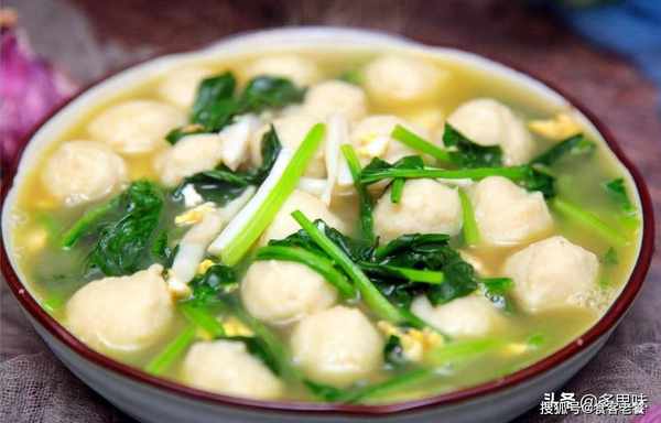 食材:菠菜一把、鸡肉丸子一盘、海鲜菇适量、鸡蛋2个、食盐半勺、生抽1勺、米醋一勺、胡椒粉3斗。