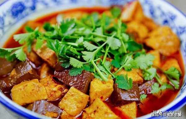 豆腐250克、鸭血1盒、小葱一小把、香菜一小把、郫县豆瓣酱、盐、味精、老抽、蒜瓣、干辣椒