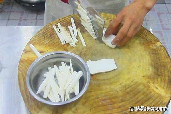 杏鲍菇切成薄片,再切成条,放置盆里。