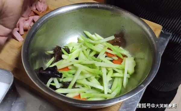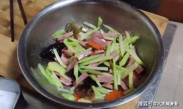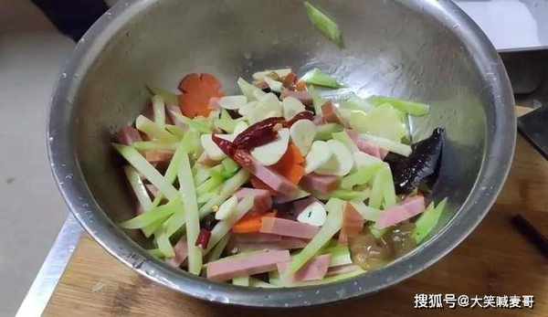 主要食材:西蓝花、胡萝卜、木耳、火腿、大蒜、花椒、干椒