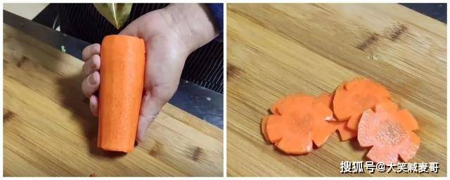 4、接着准备半个胡萝卜,切成上面这种花瓣造型。