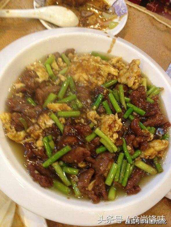 图为蒜薹鸡蛋炒肉,蒜薹清脆可口,既下饭又解馋,肉片滑滑的,应该是勾了芡,鸡蛋放的恰到好处,如果这时候有个烧饼就更好吃了。