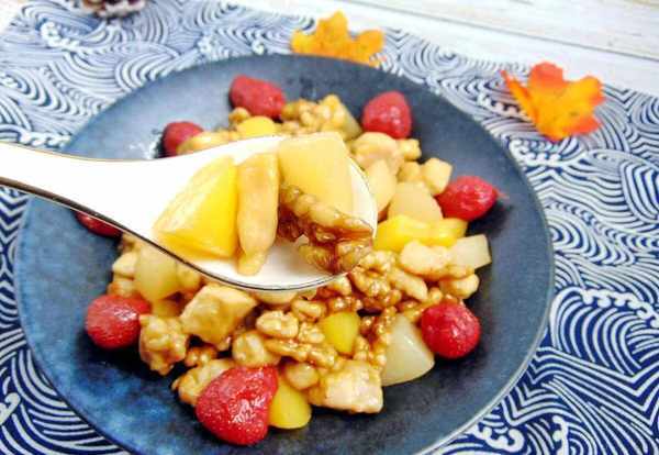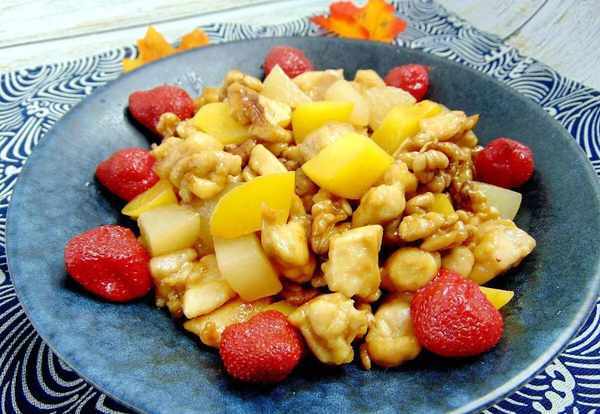鸡肉丁鲜嫩爽滑,搭配水果酸甜开胃,吃一口就上瘾啦