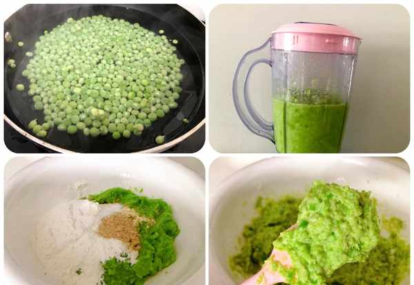 (2)接着将碗豆倒进榨汁机,加入清水,水量没过碗豆就可以,打成豌豆泥,不需要打得太碎,打成小颗粒状