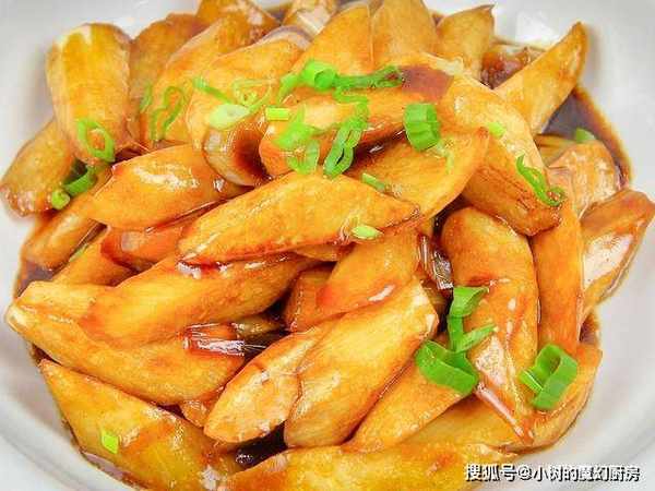 然后盖上锅盖焖煮两三分钟,收一下汤汁,加入香醋、少许水淀粉、最后淋入芝麻香油,翻炒化开调料后,就可以出锅装盘,撒上一些小葱花作为点缀。