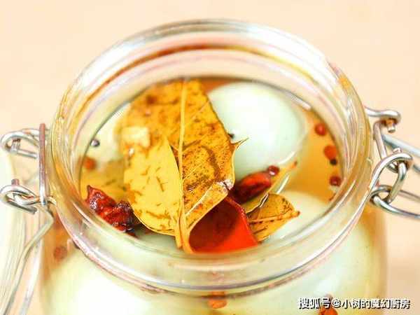 鸭蛋晾干水分以后,轻轻地放入无水无油的罐子里,然后把晾凉的料汁倒进去,再淋入一些高度白酒封口,密封腌制1个月即可食用。