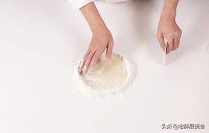 1 把低筋面粉倒在案台上,用刮板开窝。