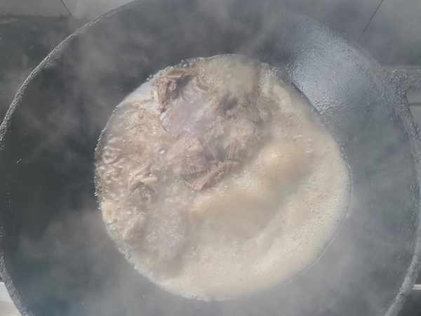 阿春在爹爹的指导下,把一块整牛腱清水洗净,泡个四、五遍水,每次半小时左右,尽量将肉中血水泌出。放入锅中焯一遍水,水一开就将水倒掉,牛腱肉前期的处理工作就做完毕,开始正式的烹饪过程。