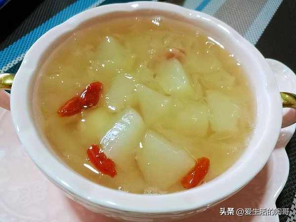 6食材煮烂即可,起锅前,加入枸杞。一道香甜好喝的汤就好了。