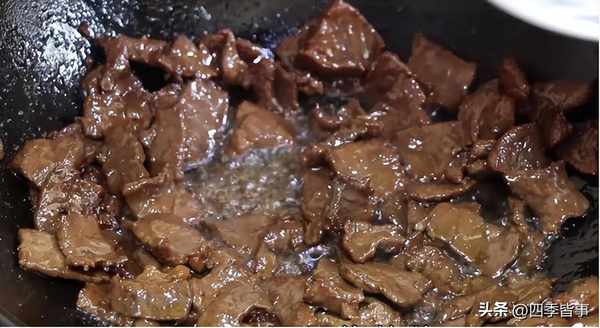 5、另起锅,锅中加入食用油,倒入牛肉,炒至牛肉变色,炒干牛肉多余水分。