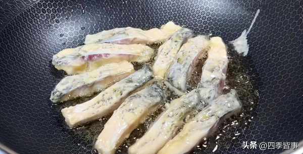 5、起锅烧热,油温5成热下放入鱼块煎,开小火煎至两面金黄后捞出。
