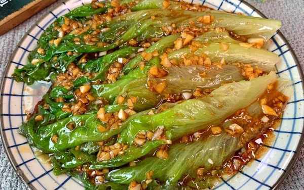 1.生菜清洗干净,锅中烧水加入一点盐和油,下生菜烫熟捞出摆盘。