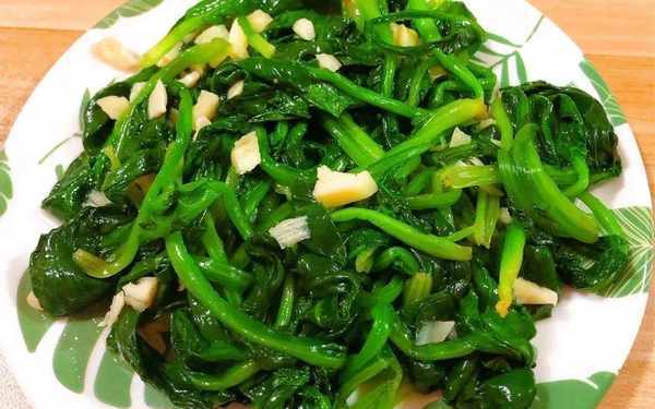 3.锅中倒入少许油,下蒜末爆香,放入菠菜翻炒,加少许盐,少许鸡精,翻炒15秒即可。