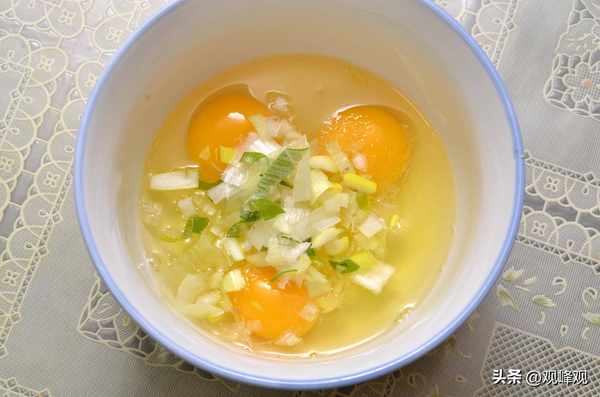 食材准备好了,我们现在就开始做这道“蛎蝗煎蛋”先把海蛎子洗净并控干水分,再把鸡蛋打散,加入适量的精盐和葱花,再把海蛎子放入鸡蛋液内搅拌均匀。