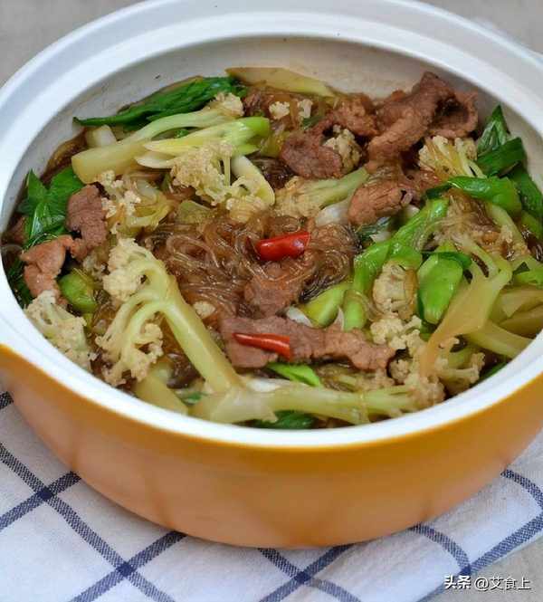 花椰菜粉条砂锅煲这么做,担保汤都不剩,碗乾盆净,下次还得多做点