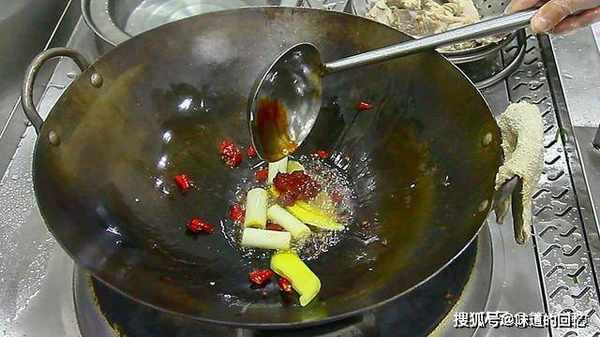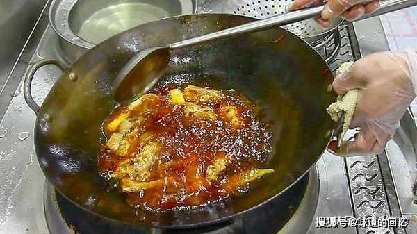 炒出红油,倒入排骨,翻炒片刻,加几滴老抽上点色,倒入料酒,把颜色炒匀后加入清水,加入