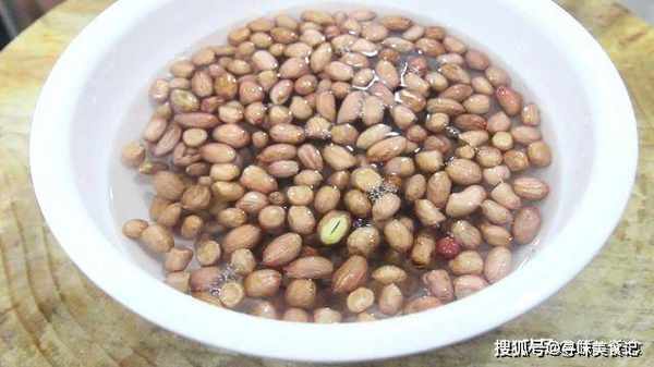 准备花生一盆、用清水浸泡一会,洗净控干水分,放入盆中。