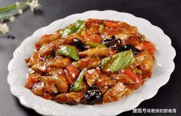 加入白砂糖、生抽和盐,上锅前用淀粉勾个芡,汁水收干即可熄心,盛到碟子里再撒点葱花。
