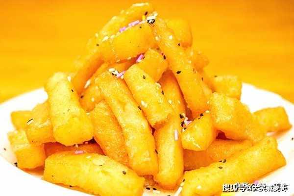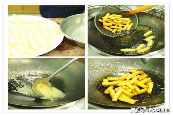 锅里放入一勺水、一勺糖,小火不停地搅把糖熬化,来一丢丢毛毛盐激发甜味,把水分熬干、熬成微微发黄的糖稀,这个时候立即把馍条倒进去快速颠锅翻匀,进行第二次糖水激,让每个馍条都挂上糖汁,搞定出锅,看看这一根根跟镀了釉似的、滑亮滑亮得,入口香酥、跟蜜一样甜。