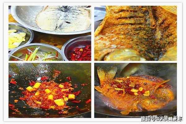 鲤鱼腌好以后在两面撒上面粉涂抹均匀,吸干表面的水分防止炸的时候溅油,而且炸出来更加香酥。锅内烧油,等到油温六成热时掂起鱼头和鱼尾,先把鱼肉朝下放入油锅中,这样炸出的翘头翘尾比较好看。鱼身定型以后再整个放入油锅,开小火炸4分钟左右,不停地往露出油面的部位浇油让鱼均匀受热,把鱼炸熟 炸至小刺焦酥、呈金黄色捞出来控油。饭店为了成菜块、好定型大多都是用油炸代替煎制,操作起来更方便。