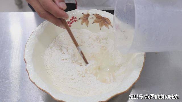 然后一次一次的加水,先和成面絮, 再揉成面团。