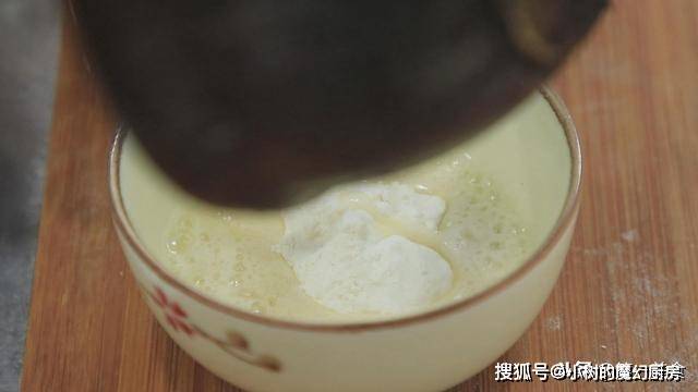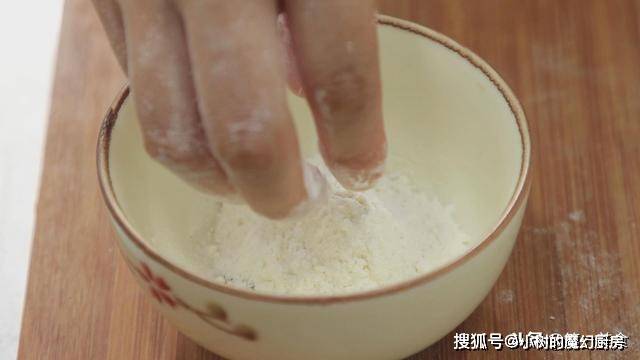 准备一个小盆,倒入精制小麦面粉100克,家常人多的话就多做一点,两个人100克面粉就够吃了。