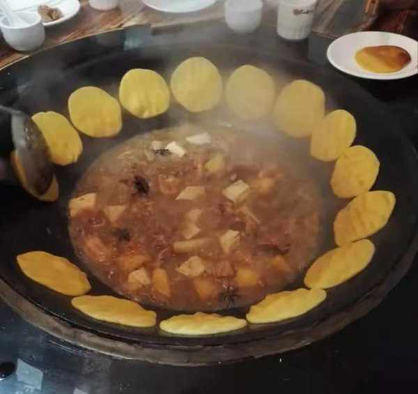 黄棒饼子贴在大铁锅边上,中间一般是烝些窝窝头,也有的锅底下是炖菜,或粘粥和小米粥,那年代大都是那样,一家人六七个孩子,人多吃得多,那时也都饭量大,能吃。