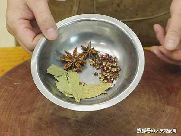 一只二斤八两小公鸡切成鸡块;碗中加入一勺花生酱、两勺甜面酱、两勺蚝油、三勺老抽、两勺白酒拌匀备用;碗中加入青花椒、香叶、八角、红麻椒。