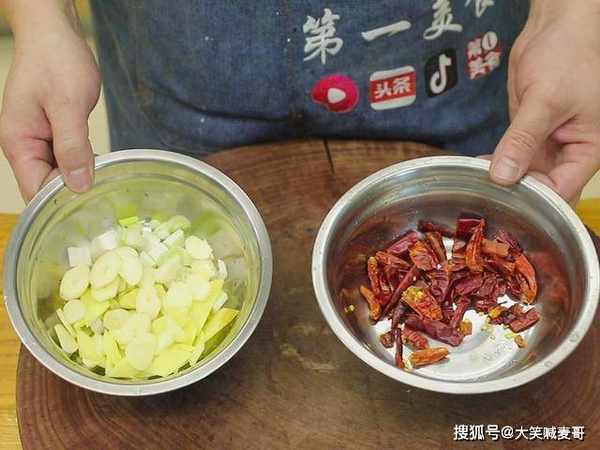 准备切一些葱姜蒜片;再多准备点干辣椒炝锅;青红椒丝用来配色;碗中加入一勺盐、一勺味精、两勺糖、两大勺醋、香油、淀粉搅拌均匀备用。
