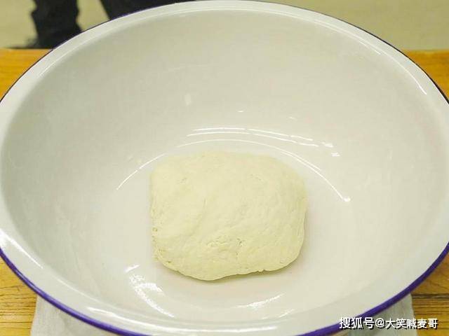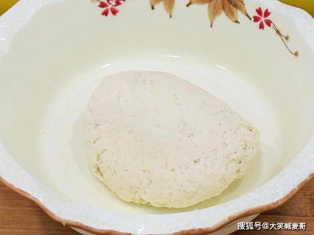 盆中倒入普通小麦面粉300克、酵母3克、无铝泡打粉2克,倒入不超过40度的温水,先和成面絮,再揉成面团,盖上保鲜膜,放在温暖的地方发酵2个小时。