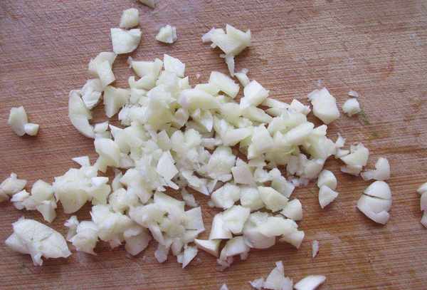 3、大蒜去皮,剁成蒜末。苋菜是一种凉性蔬菜。用蒜末来炒,不仅蒜香浓郁鲜美,还能中和苋菜的寒性。脾胃虚弱的人吃它有好处。